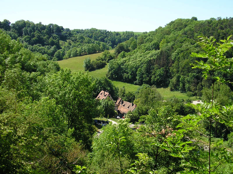 Lediglich in der letzten Stunde wurde es etwas strapazierend. Die immer seltener werdenden Schattenplätze und immer steiler werdenden Aufstiege forderten ihren Tribut und sorgten für durchschwitzte Shirts. Ein auf einer der letzten Anhöhen stehender schattenspendender alter Baum mit Bank darunter forderte ein längeres Verweilen heraus. Zur erfrischenden Abkühlung stand wie auf uns wartend ein Quellbrunnen gleich nebenan und fand regen Zuspruch. Dass niemand hineinsprang galt als Wunder. Mitgelaufene ausländische Besucher, das häufigen Gehen nicht gewohnt, zeigten ab diesem Punkt erste Anzeichen einer Erschöpfung. Auf eine Notamputation des Fußes konnte dann doch verzichtet werden und der Weg nach Rothenburg wurde wie geplant fortgesetzt.